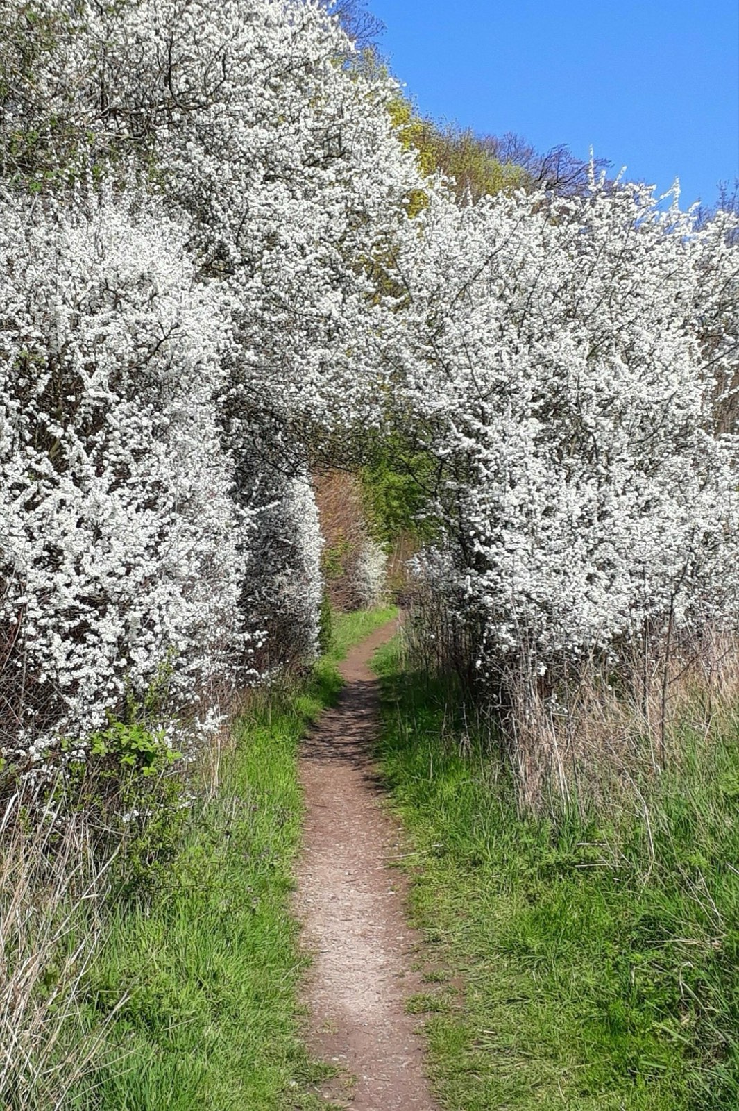 Blackthorn (Prunus spinosa) is excluded for care homes. Crab apples and Amelanchier are safe to handle. The Reflection Glade species list stays consistent year on year so familiarity is preserved.